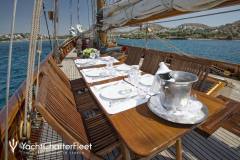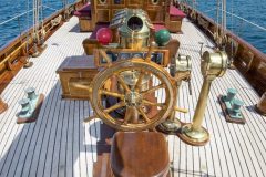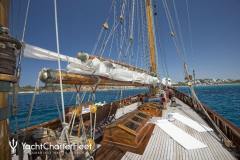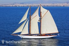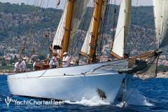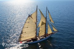 Introduced by DMA Yachting, the impressive charter yacht AELLO is a 124 ft sailboat. The promiment features of AELLO are her impeccable styling and fantastic layout. AELLO spends the season in Corsica. She was completed by the renowned boatbuilder Max Oertz in 1921. A succesful refit was delivered in 2011. and easily accommodates a group of 8 guests.