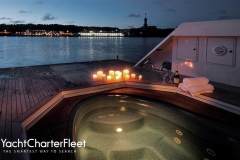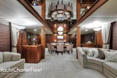 AGA 6 is classified as a superyacht. The generous aft deck, leads to the meticulously composed main saloon. The main saloon is a well-design space to spend time when the aft deck might not be as desirable (at port, private conversations) and serves as a location of entertainment. elegant cabins are thoughtfully spread out with vison for maximum room, access, comfort and privacy.