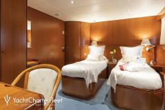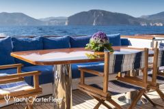 ALCOR is classified as a superyacht. The inviting aft deck, is right next to the well-equipped and inviting main saloon. The main saloon is a friendly space to spend time when the aft deck might not be as desirable (at port, private conversations) and serves as a location of entertainment. spacious cabins are laid out with vison for maximum room, access, comfort and privacy.