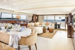 Huge amount of space for event charters, Can accomodate up to 70 guests when in port, Highly voluminous interior, En suite bathrooms as standard,