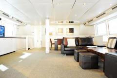 AQA is classified as a superyacht. The key part of the yacht, expansive aft deck, leads to the the heart of the yacht - the main saloon. The main saloon is a comfortable space with comfortable seating and entertainment areas and enables a number of media entertainment options. spacious cabins are purposefully laid out to allow for comfortable access and private setting.