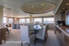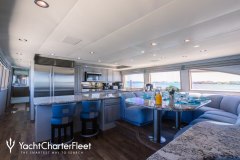 ATLANTIC is classified as a superyacht. The key part of the yacht, roomy aft deck, continues to the the heart of the yacht - the main saloon. The main saloon is a gathering space to spend time when the aft deck might not be as desirable (at port, private conversations) and enables a number of media entertainment options. tasteful cabins are purposefully laid out for maximum privacy and comfort.