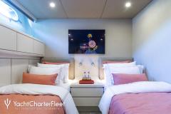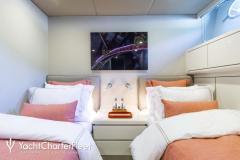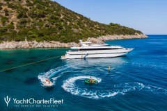 AXELLA is classified as a superyacht. The prominent section of the yacht, roomy aft deck, leads to the meticulously composed main saloon. The main saloon is a friendly space with an abundance of seating areas and enables a number of media entertainment options. spacious cabins are laid out with vison for maximum room, access, comfort and privacy.