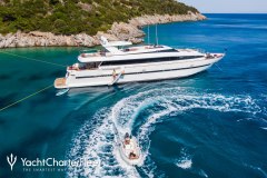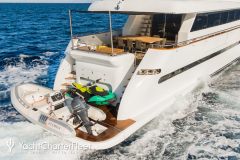 Introduced by DMA Yachting, the breathtaking charter yacht AXELLA is a 109 ft motor yacht featuring a jetski. The promiment features of AXELLA are her well-chosen interiors and interconnection with the sea. AXELLA spends the season in Corsica. She was constructed by the renowned boatbuilder Eurocraft Cantieri in 1992. An elegant refit was completed in 2022. and comfortably accommodates a maximum of 10 guests.
