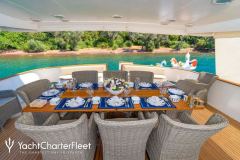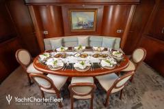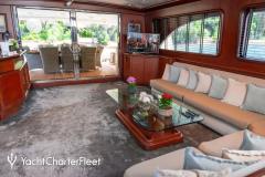 BLUES is classified as a superyacht. The prominent section of the yacht, inviting aft deck, leads to the attractive and sleek main salon. The main saloon is a well-design space that is well-equipped and inviting for meaningful conversations and serves as a location of entertainment. tasteful cabins are thoughtfully spread out to allow for comfortable access and private setting.