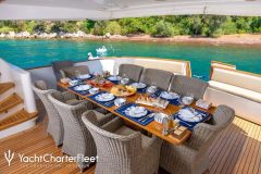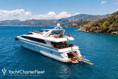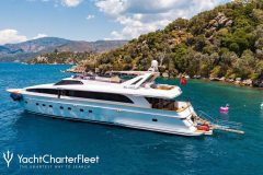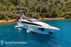 Offered by DMA Yachting, the astonishing charter yacht BLUES is a 100 ft motor yacht. The main attractions of BLUES are her well-chosen interiors and interconnection with the sea. BLUES spends the season in Corsica. She was delivered by the famous yacht builder SES Yachts in 1997. A well-done refit was delivered in 2023. and comfortably accommodates a group of 10 guests.