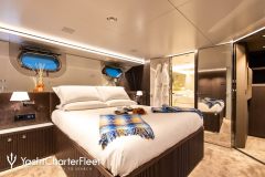 CLOUD ATLAS is classified as a superyacht. The generously sized aft deck, continues to the attractive and sleek main salon. The main saloon is a comfortable space to spend time when the weather is not ideal and serves as a location of entertainment. comfortable cabins are thoughtfully spread out to allow for comfortable access and private setting.