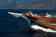 Presented by DMA Yachting, the breathtaking charter yacht DERIYA DENIZ is a 78 ft sailboat. The key elements of DERIYA DENIZ are her elegant profile and interconnection with the sea. DERIYA DENIZ spends the season in Corsica. She was constructed by a custom yachtbuilder in 2002. A comprehensive refit was completed in 2010. and easily accommodates a group of 12 guests.