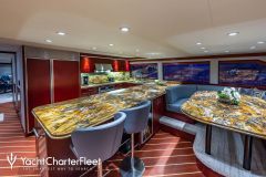 DESTINY is classified as a superyacht. The expansive aft deck, elegantly connects to the meticulously composed main saloon. The main saloon is a friendly space with an abundance of seating areas and offers a range of entertainment options. tasteful cabins are purposefully laid out for maximum privacy and comfort.