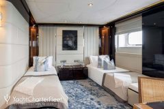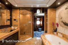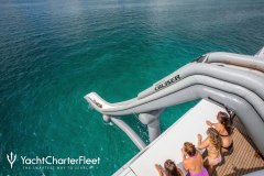 Newly Refitted inside & out, Sky lounge converts into cinema with 103″ HD plasma, Relaxation room for yoga, massage & aerobics, Vast outdoor deck areas, Sensational water slide, Quantum XT Zero Speed stabilizers, Experienced and highly professional crew,