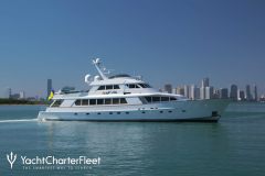 Presented by DMA Yachting, the impressive charter yacht EL JEFE is a 115 ft motor yacht featuring a jetski. The highlights of EL JEFE are her elegant profile and experienced crew. EL JEFE spends the season in Corsica. She was delivered by the well-known ship builder Derecktor Shipyards in 1989. A well-done refit was completed in 2007. and easily accommodates up to 10 guests.