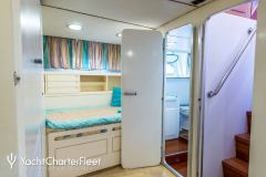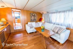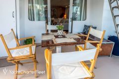 ELECTRA is classified as a superyacht. The key part of the yacht, generously sized aft deck, leads to the meticulously composed main saloon. The main saloon is a well-design space for early mornings or late evenings and enables a number of media entertainment options. 4 comfortable cabins are thoughtfully spread out to allow for comfortable access and private setting.