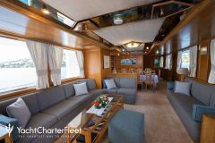 ELENA is classified as a superyacht. The key part of the boat -inviting aft deck, elegantly connects to the attractive and sleek main salon. The main saloon is a comfortable space with an abundance of seating areas and boasts a number of entertainment options. elegant cabins are laid out for maximum privacy and comfort.