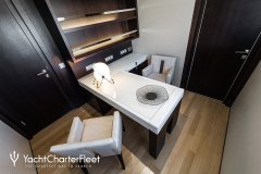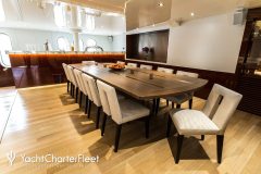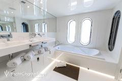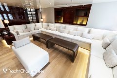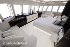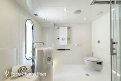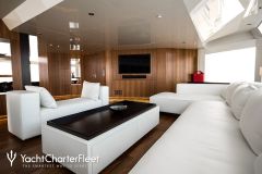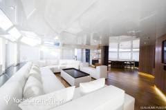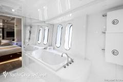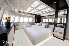 Voluminous Owner's suite with splendid 180-degree views, Stunning, monochrome interiors, Spa pool located aft of protected alfresco dining space, Several tenders ready for waterskiing, fishing and scuba diving adventures, Light and airy main deck saloon,