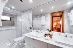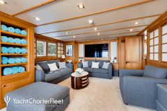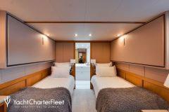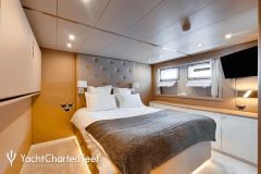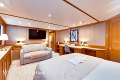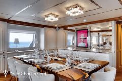 EVA is classified as a superyacht. The roomy aft deck, is right next to the well-equipped and inviting main saloon. The main saloon is a gathering space with an abundance of seating areas and offers a range of entertainment options. elegant cabins are laid out to allow for comfortable access and private setting.