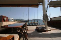 Presented by DMA Yachting, the majestic charter yacht GEM is a 129 ft sailboat. The key elements of GEM are her impeccable styling and alfresco dining areas. GEM spends the season in Corsica. She was delivered by the renowned boatbuilder Aegean Yacht in 1998. and easily accommodates a group of 16 guests.