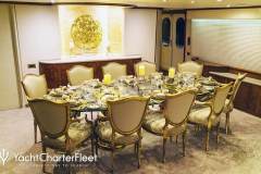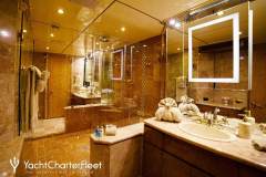 Stylish interiors with Ralph Lauren accents, Opulent main salon with Venetian-style dining set-up, Elegant sundeck with monochrome colour palette and spacious jacuzzi, Extra-wide passageways for accessibility, Shallow draft makes it easy to get even closer to the shore, On-board gym equipment, All the latest water toys and accessories ,