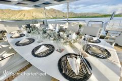 GRAND MALOEKOE is classified as a superyacht. The key part of the boat -inviting aft deck, continues to the the heart of the yacht - the main saloon. The main saloon is a well-design space for early mornings or late evenings and serves as a location of entertainment. welcoming cabins are thoughtfully spread out for maximum privacy and comfort.