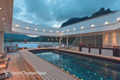 GRAND OCEAN is classified as a superyacht. The key part of the boat -roomy aft deck, is right next to the well-equipped and inviting main saloon. The main saloon is a friendly space to spend time when the aft deck might not be as desirable (at port, private conversations) and offers a range of entertainment options. comfortable cabins are laid out to allow for comfortable access and private setting.