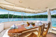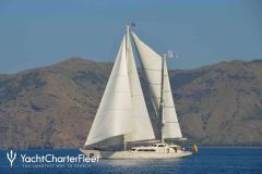 Introduced by DMA Yachting, the majestic charter yacht INFINIUM is a 131 ft sailboat. The most appealing features of INFINIUM are her absolute comfort and alfresco dining areas. INFINIUM spends the season in Corsica. She was completed by the famous yacht builder Perini Navi in 1983. A succesful refit was fulfilled in 2017. and comfortably accommodates a maximum of 14 guests.