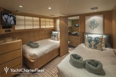 ISLAND VIBE is classified as a superyacht. The key part of the boat -expansive aft deck, elegantly connects to the well-equipped and inviting main saloon. The main saloon is a comfortable space that is well-equipped and inviting for meaningful conversations and offers a range of entertainment options. welcoming cabins are purposefully laid out for maximum privacy and comfort.