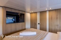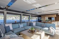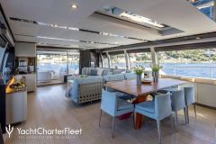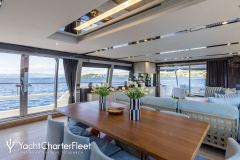 KATARIINA XO is classified as a superyacht. The generous aft deck, continues to the well-equipped and inviting main saloon. The main saloon is a friendly space to spend time when the aft deck might not be as desirable (at port, private conversations) and serves as a location of entertainment. spacious cabins are thoughtfully spread out to allow for comfortable access and private setting.