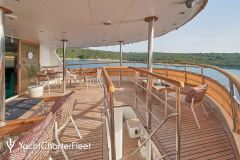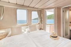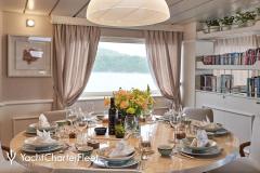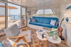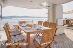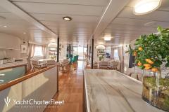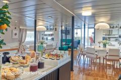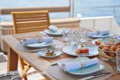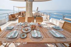 LA PERLA is classified as a superyacht. The prominent section of the yacht, inviting aft deck, elegantly connects to the meticulously composed main saloon. The main saloon is a gathering space with an abundance of seating areas and boasts a number of entertainment options. comfortable cabins are laid out with vison for maximum room, access, comfort and privacy.
