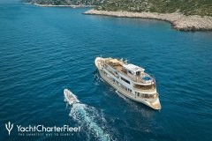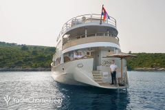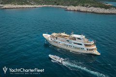 Introduced by DMA Yachting, the impressive charter yacht LA PERLA is a 130 ft motor yacht featuring a jetski. The most attractive features of LA PERLA are her impeccable styling and culinary experience. LA PERLA spends the season in Corsica. She was delivered by the ship builder West-Wlaamse West-Wlaamse in 1976. A succesful refit was completed in 2023. and easily accommodates up to 16 guests.