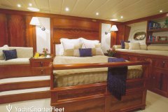 Full-beam master cabin with his/her en suite, 1,727nm range, Interior design from Studio Garroni, Sleeps 10 guests, Novurania Dinghy,