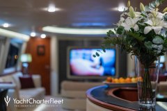 MEDUSA is classified as a superyacht. The key part of the boat -expansive aft deck, leads to the the heart of the yacht - the main saloon. The main saloon is a friendly space for early mornings or late evenings and enables a number of media entertainment options. welcoming cabins are purposefully laid out with vison for maximum room, access, comfort and privacy.