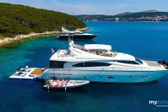 Offered by DMA Yachting, the impressive charter yacht MISS KATARIINA is a 88 ft motor yacht. The highlights of MISS KATARIINA are her well-chosen interiors and culinary experience. MISS KATARIINA spends the season in Corsica. She was completed by recognized shipbuilder Ferretti Yachts in 2004. A succesful refit was delivered in 2020. and easily accommodates a maximum of 10 guests.
