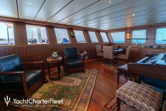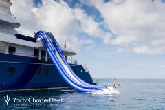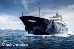 World-class expedition yacht, Three entertainment saloons, Jacuzzi-and-sun deck, Ice-strengthened hull, 10,000-mile cruising range,