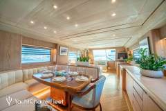 OPERA is classified as a superyacht. The prominent section of the yacht, expansive aft deck, elegantly connects to the attractive and sleek main salon. The main saloon is a comfortable space with comfortable seating and entertainment areas and enables a number of media entertainment options. spacious cabins are thoughtfully spread out for maximum privacy and comfort.