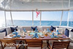 PACKAGE DEAL is classified as a superyacht. The spacious aft deck, continues to the well-equipped and inviting main saloon. The main saloon is a gathering space that is well-equipped to shield from the elements in comfort and enjoyment and offers a range of entertainment options. welcoming cabins are thoughtfully spread out with vison for maximum room, access, comfort and privacy.