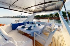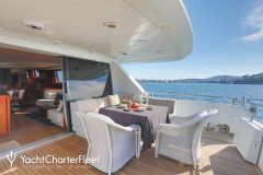 Introduced by DMA Yachting, the majestic charter yacht PALADIO is a 81 ft motor yacht. The most appealing features of PALADIO are her elegant profile and alfresco dining areas. PALADIO spends the season in Corsica. She was constructed by the well-known ship builder Italversil Italversil in 1993. An elegant refit was delivered in 2023. and comfortably accommodates a maximum of 10 guests.