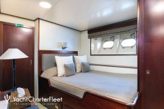PALOMA is classified as a superyacht. The key part of the boat -generously sized aft deck, continues to the attractive and sleek main salon. The main saloon is a well-design space to spend time when the aft deck might not be as desirable (at port, private conversations) and serves as a location of entertainment. tasteful cabins are purposefully laid out with vison for maximum room, access, comfort and privacy.