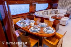 PAREAKI is classified as a superyacht. The expansive aft deck, elegantly connects to the well-equipped and inviting main saloon. The main saloon is a well-design space to spend time when the aft deck might not be as desirable (at port, private conversations) and boasts a number of entertainment options. welcoming cabins are laid out with vison for maximum room, access, comfort and privacy.