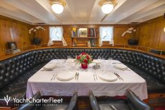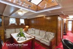 Lifting skylight in main salon, Traditional 1930s interior, Original Oregon pine furniture, State-of-the-art tenders and water toys, Perfect for classic yachting enthusiasts,