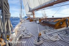 Offered by DMA Yachting, the breathtaking charter yacht PURITAN is a 126 ft sailboat. The most valuable elements of PURITAN are her elegant profile and fantastic layout. PURITAN spends the season in Corsica. She was delivered by the renowned boatbuilder Elco Elco in 1930. A succesful refit was finalized in 1990. and comfortably accommodates up to 8 guests.