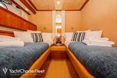 Master cabin with dressing room, Interior design from Marty Lowe, Sleeps 8 guests, Tender, Able to access shallow bays and coves,