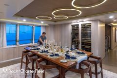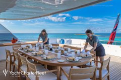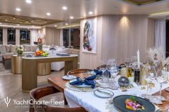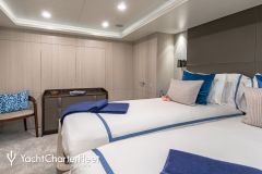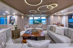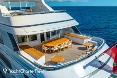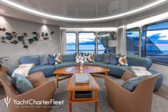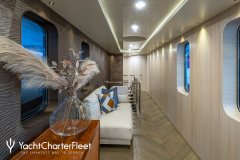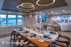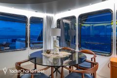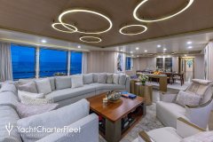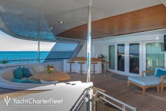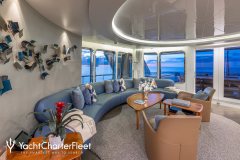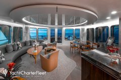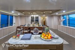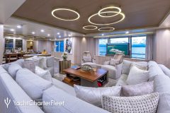 REVERIE is classified as a superyacht. The prominent section of the yacht, generously sized aft deck, continues to the well-equipped and inviting main saloon. The main saloon is a well-design space to spend time when the aft deck might not be as desirable (at port, private conversations) and offers a range of entertainment options. welcoming cabins are purposefully laid out to allow for comfortable access and private setting.