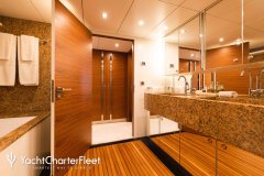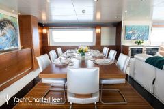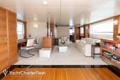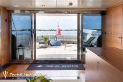 SEA AXIS is classified as a superyacht. The prominent section of the yacht, expansive aft deck, continues to the the heart of the yacht - the main saloon. The main saloon is a friendly space with an abundance of seating areas and boasts a number of entertainment options. spacious cabins are thoughtfully spread out with vison for maximum room, access, comfort and privacy.
