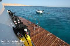 Full-beam master cabin for superior comfort, Sleeps 13 guests, 8.5m/27'11" Dive Master RIB, Able to access shallow bays and coves,