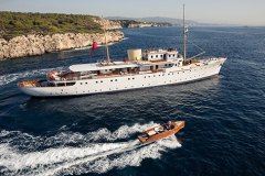 Advertised by DMA Yachting, the breathtaking charter yacht SHEMARA is a 212 ft sailboat. The primary distinction of SHEMARA are her absolute comfort and experienced crew. SHEMARA spends the season in Corsica. She was delivered by the famous yacht builder Vosper Thornycroft in 1938. A comprehensive refit was completed in 2014. and easily accommodates up to 12 guests.