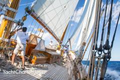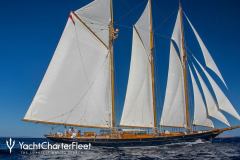 Introduced by DMA Yachting, the impressive charter yacht SHENANDOAH OF SARK is a 178 ft sailboat. The key elements of SHENANDOAH OF SARK are her generous space and experienced crew. SHENANDOAH OF SARK spends the season in Corsica. She was completed by the ship builder Townsend & in 1902. A comprehensive refit was finalized in 2019. and comfortably accommodates a maximum of 11 guests.