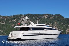 Introduced by DMA Yachting, the majestic charter yacht SHERAN is a 98 ft motor yacht. The highlights of SHERAN are her absolute comfort and experienced crew. SHERAN spends the season in Corsica. She was completed by recognized shipbuilder Sanlorenzo Sanlorenzo in 2000. A well-done refit was finalized in 2008. and comfortably accommodates a maximum of 8 guests.