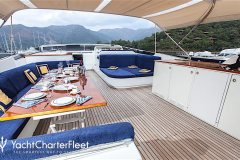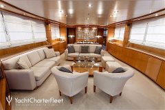 SHERAN is classified as a superyacht. The key part of the boat -generous aft deck, leads to the well-equipped and inviting main saloon. The main saloon is a well-design space with comfortable seating and entertainment areas and offers a range of entertainment options. comfortable cabins are thoughtfully spread out for maximum privacy and comfort.