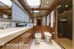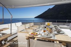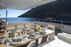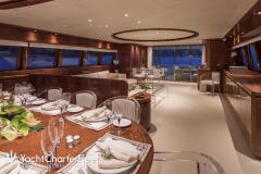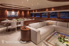 SOLE DI MARE is classified as a superyacht. The key part of the yacht, generous aft deck, elegantly connects to the well-equipped and inviting main saloon. The main saloon is a friendly space for early mornings or late evenings and offers a range of entertainment options. spacious cabins are thoughtfully spread out with vison for maximum room, access, comfort and privacy.