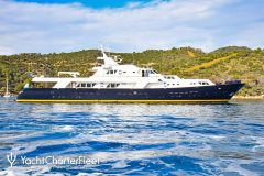 Advertised by DMA Yachting, the astonishing charter yacht SOMETHING COOL is a 149 ft motor yacht featuring a jetski. The primary distinction of SOMETHING COOL are her impeccable styling and alfresco dining areas. SOMETHING COOL spends the season in Corsica. She was delivered by the ship builder CRN CRN in 1981. An elegant refit was fulfilled in 2023. and comfortably accommodates up to 12 guests.