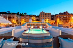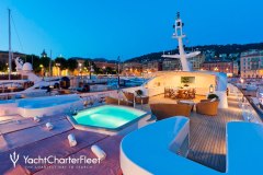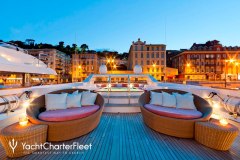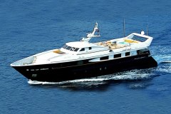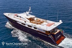 Presented by DMA Yachting, the impressive charter yacht SOPHIE BLUE is a 134 ft motor yacht featuring a jetski. The key elements of SOPHIE BLUE are her well-chosen interiors and fantastic layout. SOPHIE BLUE spends the season in Corsica. She was delivered by the ship builder CBI Navi in 1999. and comfortably accommodates a group of 12 guests.